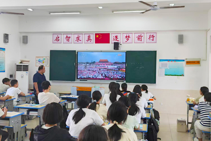 9月3日上午,千人桥中学组织全体师生观看纪念中国人民抗日战争暨世界反法西斯战争胜利80周年大会直播节目。在这个特殊的日子里,全体师生共同见证国家重大历史时刻,接受了一次深刻的爱国主义教育。