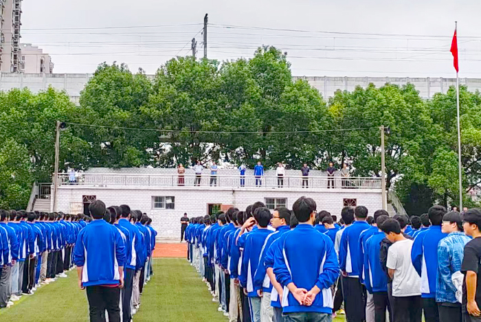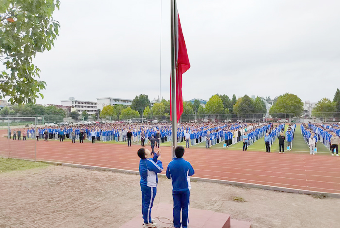 仪式上,全校师生整齐列队、庄严肃立。当《义勇军进行曲》的旋律奏响,五星红旗缓缓升起,师生行注目礼、唱国歌。随后,高二(2)班陶然同学作《良好的开端是成功的一半——新学期,你准备好了吗?》的国旗下演讲,号召同学把握新学期的开端,以饱满状态迎接新挑战。