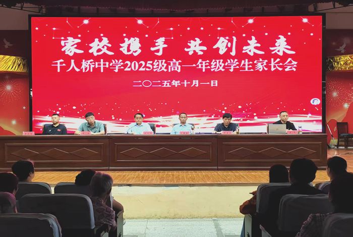为进一步加强家校沟通,凝聚育人合力,共同促进学生健康成长,10月1日上午,千人桥中学隆重召开了2025级高一学生家长会。