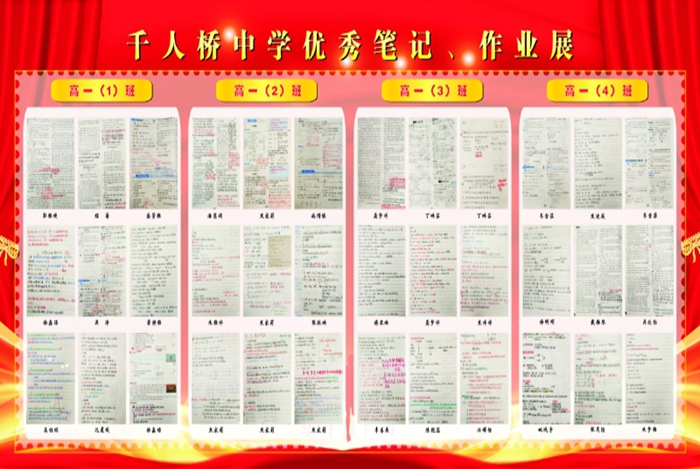 为充分发挥优秀学子的榜样引领作用,营造“比、学、赶、帮、超”的浓厚学习氛围,9月底,千人桥中学成功举行了高一年级优秀学习笔记与作业评选活动。