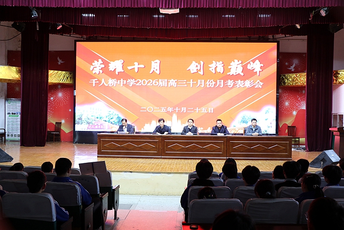 10月25日下午,千人桥中学高三年级十月份月考表彰会在学术报告厅隆重举行。高三全体师生参会,会议由副校长黄金星主持,校长王克胜及年级部负责人出席。