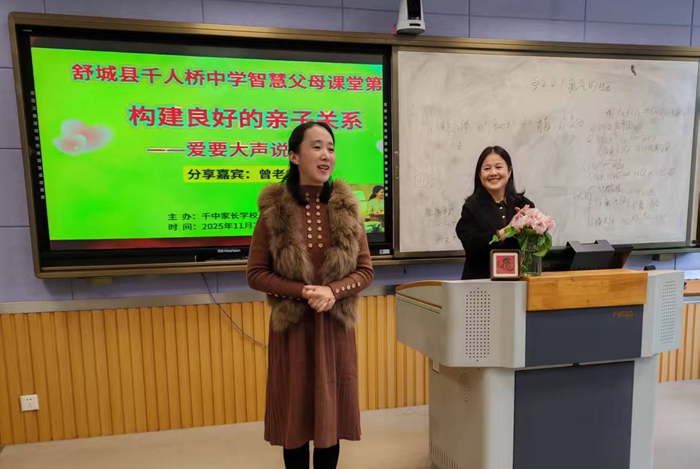 此次课堂传递了“爱要主动表达”的理念,为家长搭建情感联结桥梁。千人桥中学“智慧父母课堂”系列活动聚焦家庭教育痛点,后续将持续推出主题课堂,助力家校社协同育人。
