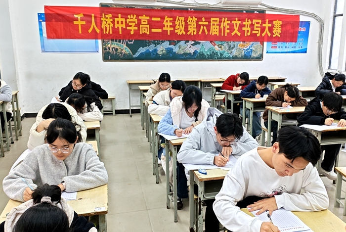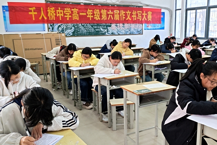 为弘扬中华优秀传统文化,强化学生规范书写意识,提升语文核心素养,11月30日,千人桥中学举办以“工整书写,翰墨传情”为主题的第六届校园作文书写大赛。高一、高二年级120名学子参赛,开展文采与书写艺术的双重比拼。