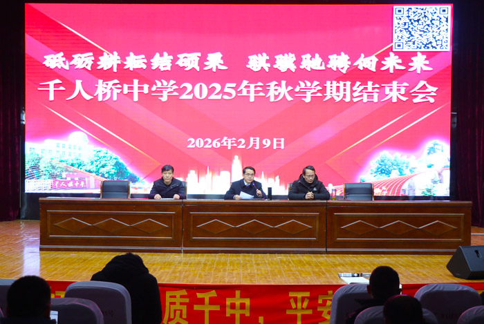 展望2026年新征程,王克胜向全体教职工发出号召,勉励大家拿出“一马当先”的开拓气概、“快马加鞭”的不懈干劲和“蹄疾步稳”的执着韧劲,凝心聚力、加压奋进,立足本职、深耕育人。举校同心落实“八大举措”,持续擦亮千中教育品牌,用心用情用力、同德同向同行,共赴教育高质量发展的星辰大海。最后,他代表学校领导班子向全体教职工致以诚挚的感谢和马年新春祝福,大会在热烈的掌声中圆满结束。