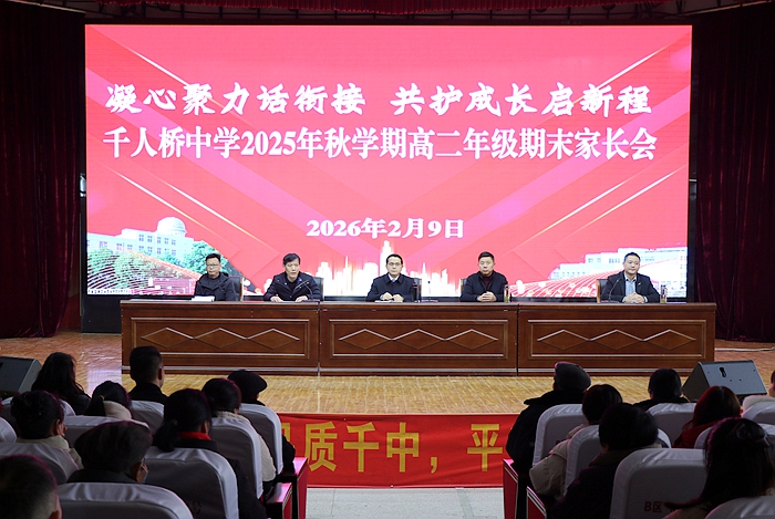 为凝聚家校教育合力,助力学生平稳度过高二关键期、做好准高三衔接准备,2月9日上午,千人桥中学2024级高二年级家长会顺利召开。本次会议由副校长黄金星主持,校长王克胜、校工会主席束永柱出席,高二年级班主任及全体高二家长参会,会议分两个阶段进行。