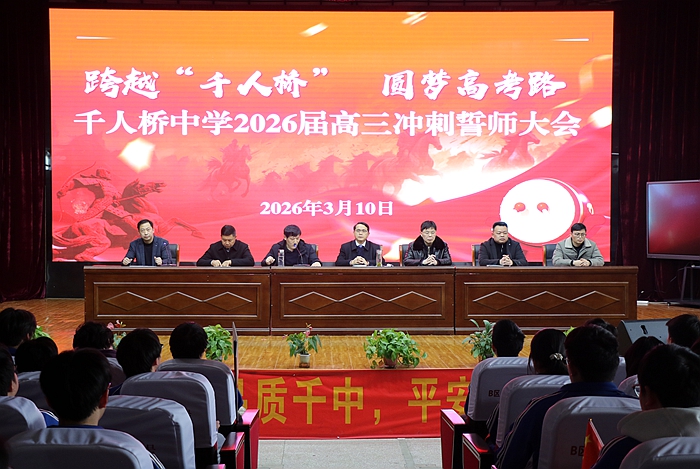 春潮砺志,逐梦正酣。3月10日下午,千人桥中学在报告厅隆重举行2026届高三备考推进会。副校长黄金星主持会议,高三全体师生及部分家长代表齐聚一堂,共商备考大计,共赴逐梦之约。
