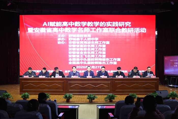 3月27日,“AI赋能高中数学教学的实践研究”暨安徽省高中数学名师工作室联合教研活动在千人桥中学举行。活动由舒城县教育局主办、千人桥中学承办,安徽省黄海波、宫政等名师工作室团队及全国县中头雁教师陶善东、陈杰工作室协办,省内各地高中数学名师、全县高中数学学科骨干教师齐聚一堂,共探高中数学教学创新与高考备考新路径。