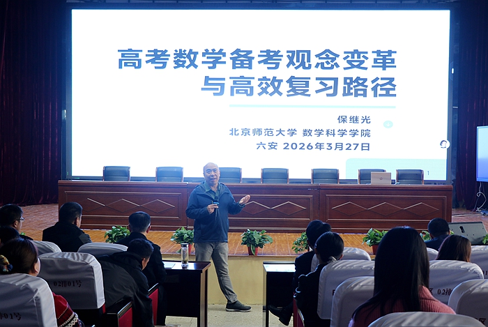 下午活动由安徽省中学数学教研员黄海波主持,他隆重介绍并欢迎北京师范大学保继光教授。保教授以《高考数学备考观念变革与高效复习路径》为题,结合真题实例,围绕课标修订、备考策略分享经验,强调教考衔接,提出“先讲透教材,再提升复习”的备考原则。讲座后,黄海波结合高考评分经验剖析教学误区,指导教师坚守基础、吃透教材、摒弃低效教学,强调借助AI技术实现精准备考,助力学生减负增效、提升数学核心素养。活动最后,王克胜作总结,认为活动实现理念与实践交融、搭建了常态化交流桥梁,落实了教育数字化战略,为安徽高中数学教育高质量发展注入新动能。